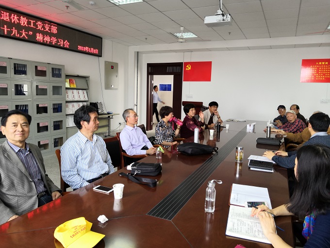 退休教工党支部召开党员会议,集中学习党的十九大精神,会议由支部书记胡敏主持,学院党委书记汪俊武、副书记余妍霞、党委秘书汪丰云参加了会议。