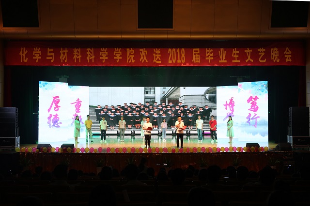 朗诵《颂别》、毕业微视频《曾“津”,我们在“赭”里》和古典舞《浓情淡如你》将毕业生对母校的眷念不舍用最美好的画面呈现出来,毕业班辅导员程紫丹、王国良与毕业生代表合唱的《祝福》将离情深藏,将祝福送上,祝愿毕业生走向更美好的远方。师生合唱的《岁月》,歌曲悠扬隽永,带领观众回味了化材的“岁月”悠长。长亭外,古道边,潜岳苍苍,江淮汤汤,在《“化”别师大》的美妙歌声中,本次毕业生晚会圆满落幕。