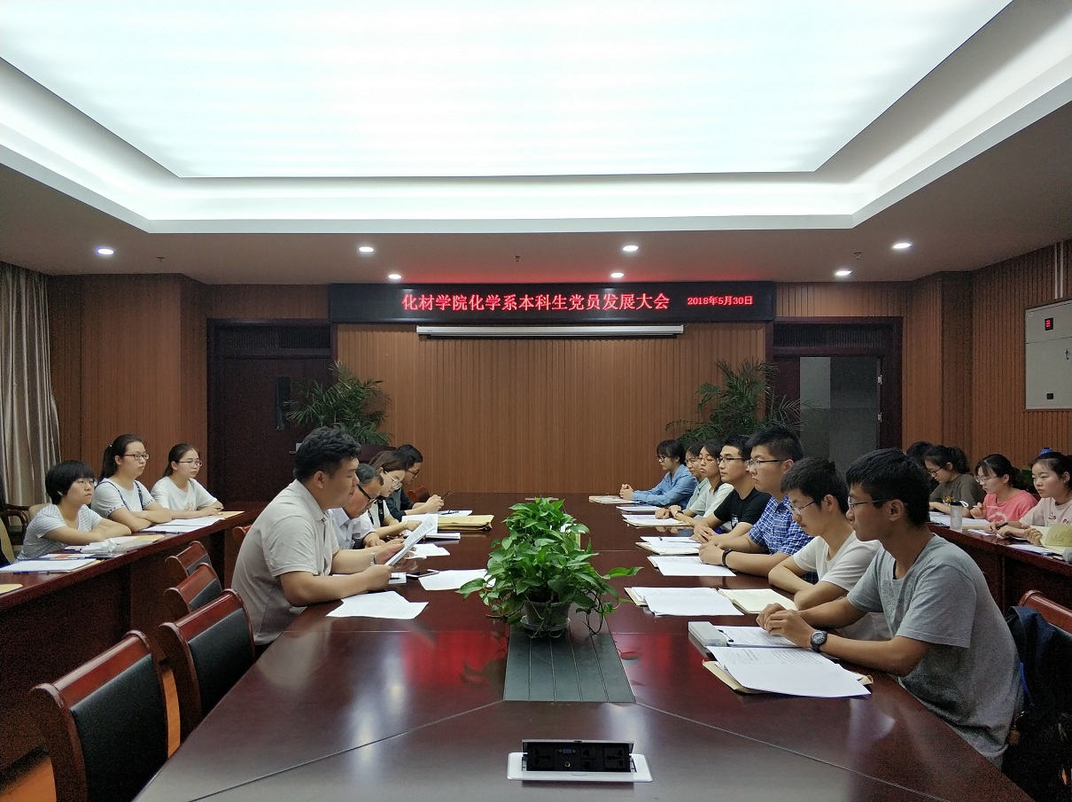 党委秘书汪丰云老师、支部在校党员26人、本次发展对象7人及发展对象入党介绍人魏杰顶老师参加会议。大会由化学系本科生党支部书记蒋建伟老师主持。