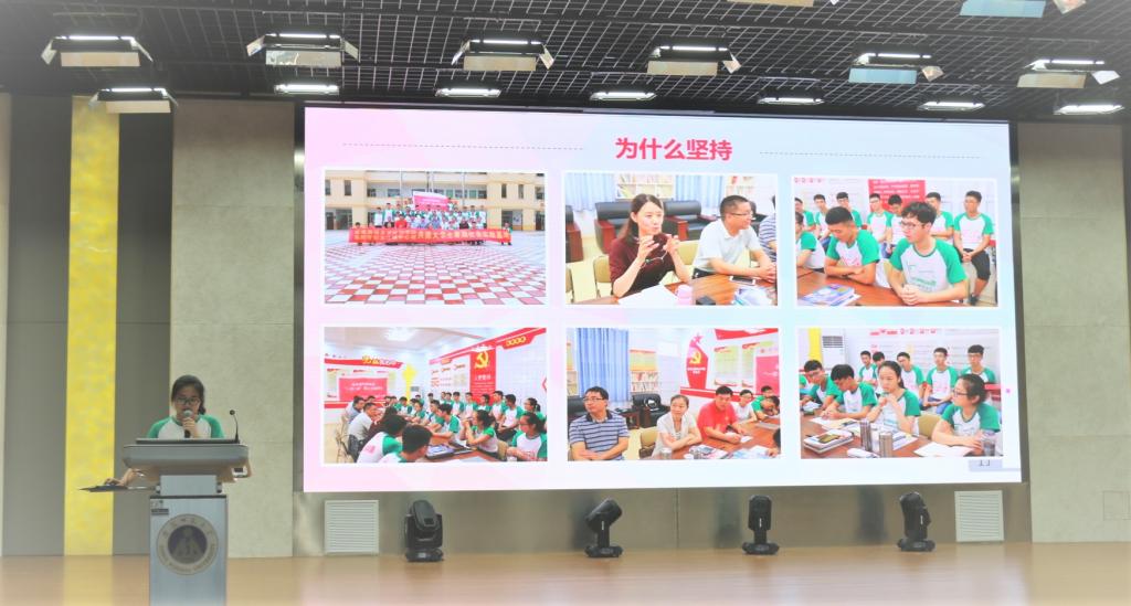 学生会主席刘茹代表优秀实践队长分享了团队实践故事。她用“为什么出发、为什么坚持以及为什么继续”三个精炼的问句,动情的汇报了团队2017年夏天“爱心支教”的青春实践故事。从备课到授课,从课堂到课外,他们认真准备,一丝不苟。汇报中,她情真意切地说到:无穷的远方还有无穷无助的人们,而年轻的我们还能做很多,心怀远方,我们走在路上。