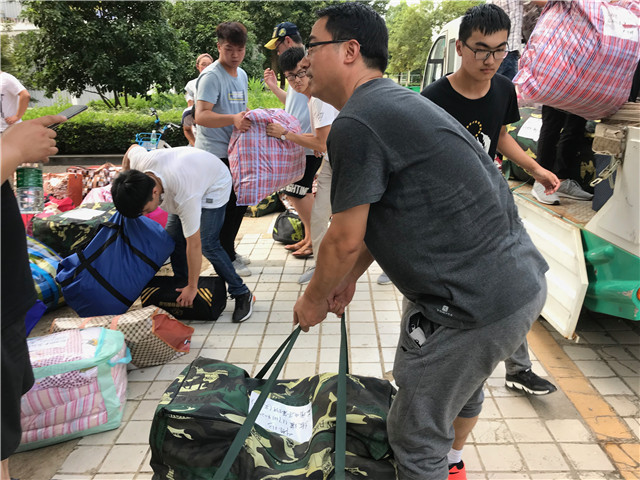 安全验收,善后搬迁有素质有水平。历时三个小时, 学院完成了千余个包裹的输送工作。在搬迁工作结束后,党委副书记先是带领辅导员深入学生旧宿舍,查看了卫生与公共物品破损情况,要求各班级要做好善后搬迁,做到素质搬迁,做好善后的卫生清扫与公共物品的清点。随后,书记一行人来到学生新宿舍探望情况,并叮嘱学生安全事宜,关心学生帮助解决问题。对于新宿舍未通电情况,余书记及时与后勤沟通协调,按要求让辅导员通知学生网上修改信息并及时充值,确保晚上留宿的学生有电可用。在第二天的宿舍验收工作中,17级辅导员与后勤部门工作人员共同完成了宿舍的交接验收,干净整齐的宿舍环境,无破坏破损的公共物品情况,受到了后勤部门的高度赞扬。后期的严格要求,高精标准,高素质高水平完成了善后搬迁工作。