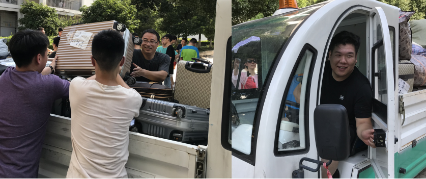 多方联动,实施搬迁有组织有秩序。搬迁工作时间紧,任务量大,但在搬迁现场,多方联动,使得搬迁工作有条不紊的进行。院党政班子成员亲临现场指导搬迁工作,领导亲自加入搬迁队伍,与学生共搬行李,暖心学生。15级辅导员蒋建伟带着自己班级的学生志愿者、16级辅导员王国良带学生会成员积极协助三位17级辅导员现场统筹调度,两辆搬迁专用车、七个批次搬迁学生,五栋楼之间的宿舍调换,有序协调。学院组织了“党员帮迁队”、“团学骨干帮迁队”、“班级干部帮迁队”,负责协助组织现场秩序,帮助同学们上下车搬迁,此外,院团委学生会还为搬迁同学们提供水和备用食物、药品等,做好搬迁工作的全程服务保障。师生共搬迁,团学共帮迁的多方联动机制,有序有力,组织得当,圆满完成搬迁工作。