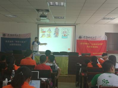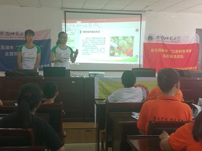 此次活动以“青春使命,共筑食品安全梦”的实践主题开展,在芜湖市社区科普大学的组织下,上午十点开始了“转基因食品安全”与“婴儿食品安全”的食品安全宣讲。面对社区居民,宣讲队员以简单明了的语言阐述“转基因”等一系列科学知识术语,并适当引用生活中的食品安全的例子,结合生动有趣的PPT演示及视频播放,帮助社区人们更好地了解了食品安全的相关知识。在宣讲过程中,队员注重启迪引导,通过向居民提问食品安全相关问题,引导他们对食品安全的重要性进行思考。宣讲结束后,实践队员们为社区居民们耐心解答一系列关于日常食品安全的问题。