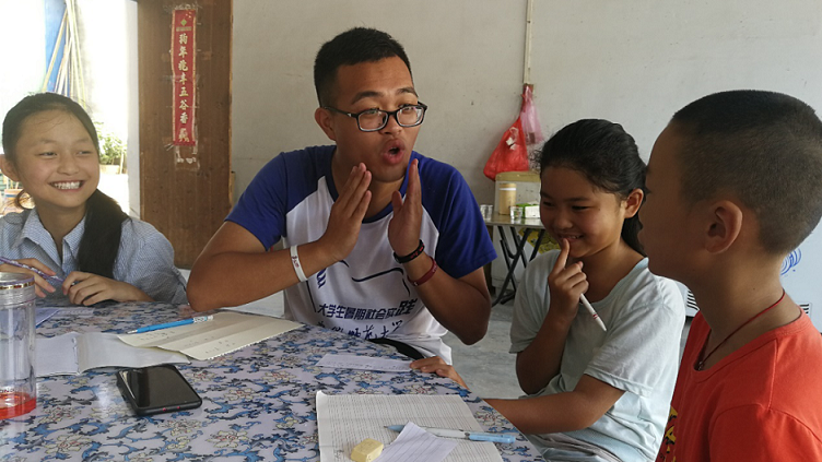 七月的淮南热的像一个蒸炉,火辣辣的太阳撕扯着大地,老师和孩子们早已汗流浃背,晶莹的汗水如同雨水般不停的滴落,沾湿了他们的衣裳,而他们却没有丝毫的怨言。依然用最清晰,最易懂得的方式为孩子们解决他们不懂得问题。遇到一些抽象的问题他们会用一些手势,甚至是一些工具去帮助他们理解这些问题。孩子们和家长对这些小老师们表示由衷的感谢,非常热情的留他们在家中吃饭,即使是一些简单的饭菜,他们还是谢绝了他们的好意。“我们是给孩子进行作业辅导的,不是来蹭吃蹭喝的,给孩子们辅导是我们应尽的责任”一位为孩子进行辅导的志愿者说。