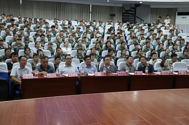 创新创业基金捐赠单位代表、马鞍山锐生工贸有限公司副总经理张立、何振铿,优秀院友、安徽工业大学教师徐其言,校团委书记梁燕,学院班子全体成员、系主任、优秀指导教师代表及全体辅导员应邀出席,2018级近400名同学参会聆听,院党委副书记余妍霞主持会议。