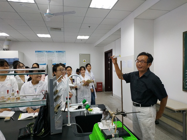 课上,熊老师强调了中学化学实验的危险性,要求化学师范生要时刻注意学生的安全以及实验的严谨性,然后由俞文昭同学进行了实验步骤的详尽讲解。熊老师再对本次实验课中的教学目标进行强调以及对实验过程进行了补充和纠正,提出了在化学实验教学中要以身边中的实例为主,体现化学在生活中的重要性。学生听讲认真,热情的参与练习,在讲解的最后熊言林老师也强调了在实验过程中遵循“预测—观察—解释(POE”)教学理念,为学生做好了总结。