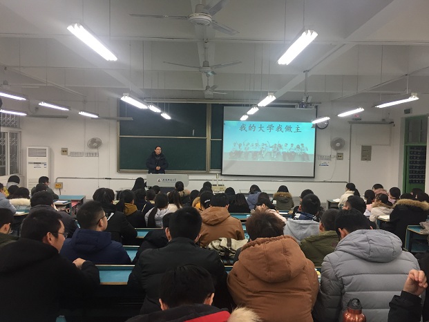 12月11日下午,学院党委书记汪俊武应邀为2017级材料化学专业学生讲授了一堂主题为“我的大学我做主”的互动交流思政课,本次思政课在行知楼2070201教室举行,辅导员陈露主持。