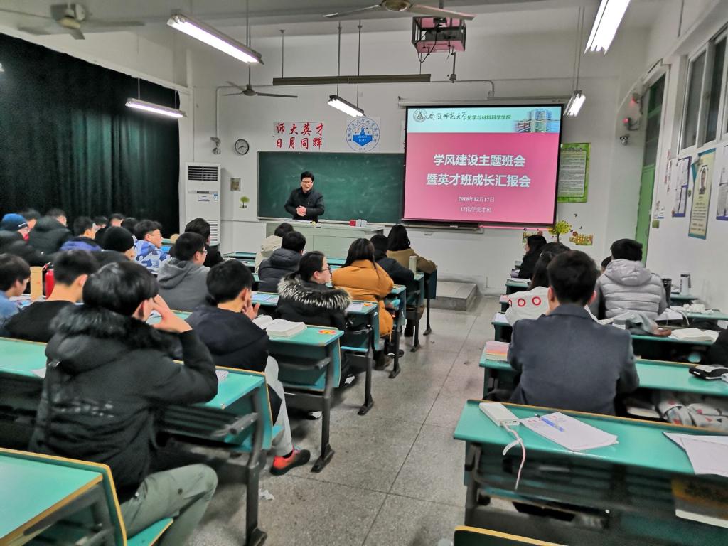 本网讯(篮球比分手机 )为进一步强化学院学风建设,加强思想引领,近日,篮球比分手机 院长高峰走进17级化学非师范班主题班会,与学生共同探讨学风建设,聆听学生成长汇报。学院党委副书记余妍霞参加了班会。辅导员荣菁秋主持了班会。