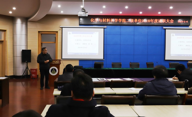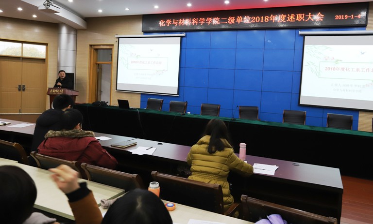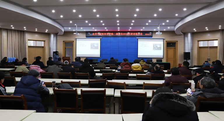举行2018年度领导班子和领导人员述职评测大会及二级单位述职考核大会,全体教职工参加大会,会议由学院党委书记汪俊武主持。