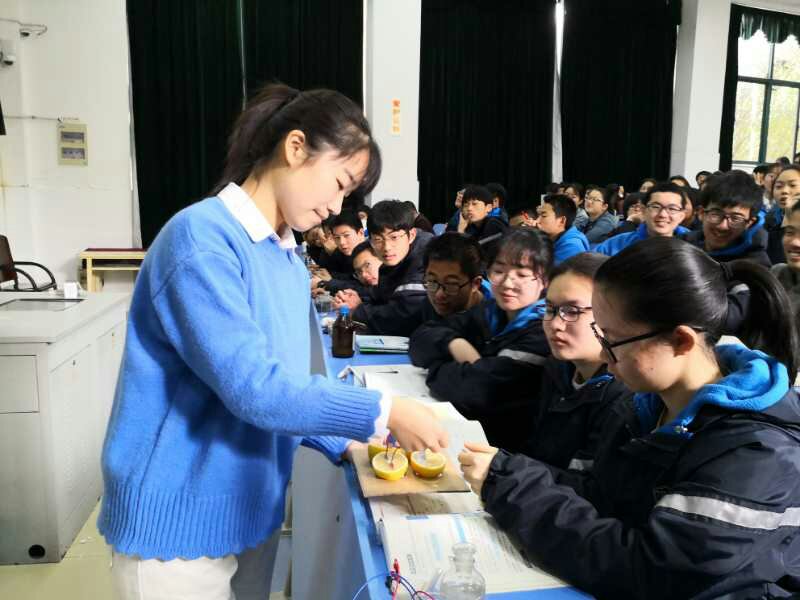 化学系2016级实习生刘楠楠于芜湖市第十二中学东阶梯教室举行了《化学能与电能》公开课。本次活动由实习指导老师熊言林主持,芜湖市第十二中学教务处主任陈波老师、办公室副主任冯正午老师及化学教师唐枫老师出席了本次活动。出席本次活动的还有篮球比分手机