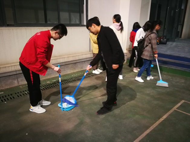 2019年4月13日晚上,研究生各专业党支部学员对学院一楼羽毛球场进行了打扫,让全体教职工与学生有了更整洁的运动场地;14日下午应用化学系本科生党支部小组学员在组长张凡的带领下对化学楼三楼的门窗、墙面进行了打扫;晚上小组组长吕潇带领化学工程与工艺系本科生党支部全体学员打扫整理了行知楼2010208教室和走廊,并将教室遗失的三部手机摆放到手机袋中。