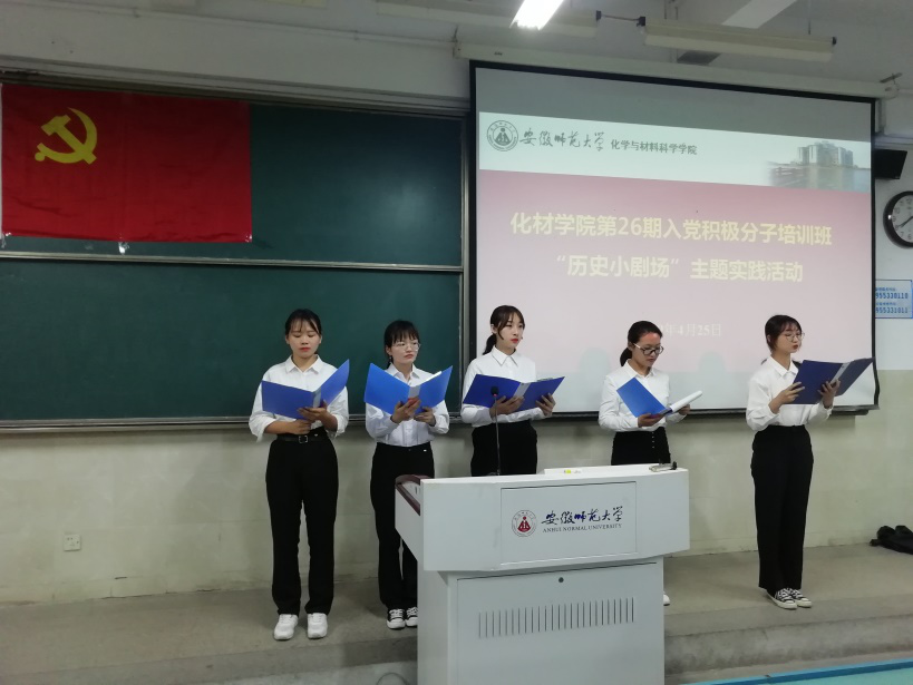 分党校第26期入党积极分子培训班第二次实践活动,在行知楼2010404教室如期举行。本次实践活动以“历史小剧场”为主题,由化材学院党校班班主任陶勇老师主持。此次实践活动以小组为单位,分别以朗诵、故事分享、话剧表演等不同形式依次展示历史主题。