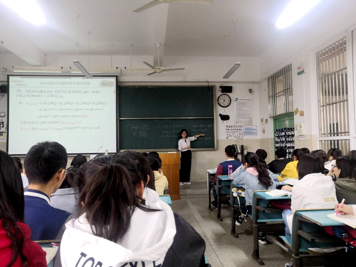 (本网讯 2018级化学(师范)专业 张小楠)4月26日上午,王广凤老师在2010302教室进行了公开课《络合滴定之副反应系数》,2018级化学师范专业全体学生、学院多位教师共同聆听了此次课程。