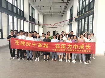 )为加强和推进心理健康教育工作,培育大学生自尊自信、理性平和、积极向上的健康心态,学院结合学校文件,围绕“五个一”活动要求,以“在挫折中奋起,在压力中成长”为主题在5月底到6月初开展了系列内容丰富、形式多样的心理健康教育活动。