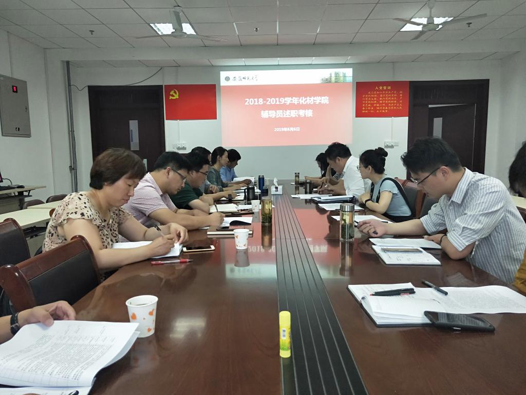 党委于2019年6月6日上午对学院10名专兼职辅导员在2018-2019学年的工作进行了述职考核。院党委对本次考核非常重视,全院党政领导班子、学院各专业负责人,全体专兼职辅导员参加了考核活动。