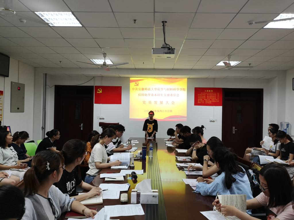 应用化学系本科生党支部在礼勤楼707党员活动室召开了支部党员发展大会。大会由应用化学系本科生党支部书记陶勇主持召开,出席本次会议的有篮球比分手机