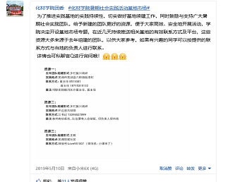 2019年暑期社会实践活动方案》,自5月上旬全面实施,从团队策划、基地建设、人员组成三个方面,多措并举扎实推进暑期社会实践组队工作。