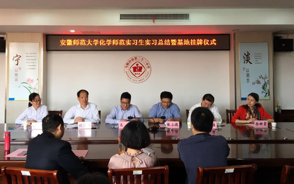 领导老师深入马鞍山二十二中看望化学师范专业实习生,并开展了实习交流座谈会和实习就业基地挂牌仪式。马鞍山二十二中校长胡学平,书记王雁,办公室主任刘爱和,教导主任曹捷、副主任顾巍,中学化学名师工作室主持人、正高级特级教师后勇军,化学教研组教师代表,篮球比分手机