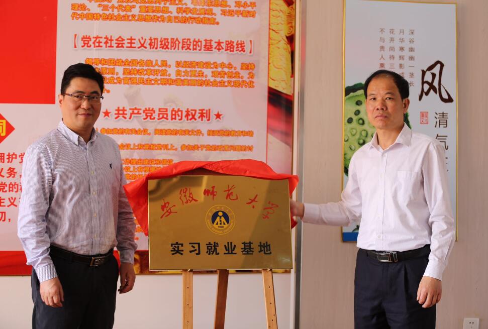 最后,高峰与胡学平共同为“安徽师范大学实习就业基地”揭牌。