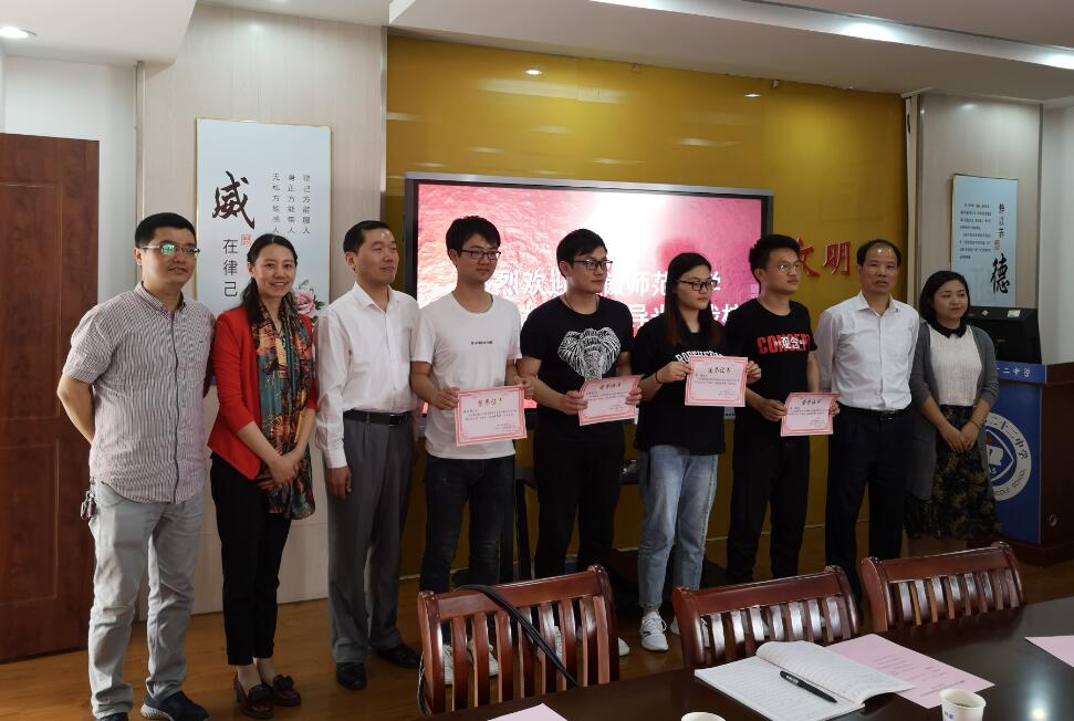 马鞍山二十二中在实习过程中对10位实习生组织了课堂教学技能比赛,并且评出了一等奖三名、二等奖三名、三等奖四名。座谈会现场还进行了颁奖仪式。
