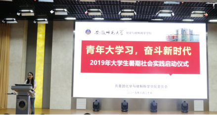 一直高度重视暑期社会实践,今年学院的实践内容紧跟时代步伐并结合专业特色,共分为四大主题团队,即五四先锋团、专业见习团、环保宣教团、爱心服务团,分别投身红色调研、爱心支教、科普宣讲等多个实践活动。全院共组建6支校级重点团队、23支院级重点团队,近500多名化材学子。同时,本次启动仪式让同学们在多方面、多角度对暑期社会实践有了一个较为深刻全面的了解,也大大鼓舞了参与本次活动同学,书写了2019年暑期社会实践活动新篇章的第一页。