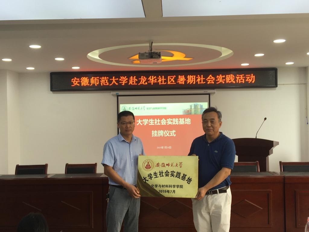 在揭牌仪式上,王波涛副院长介绍了学校和学院的概况,对社区给青年大学生提供实践的平台予以感谢。并鼓励实践志愿者要勇担时代使命,珍惜实践机会,努力用自己所学服务社区居民,在实践中增长才干,受到教育。龙华社区书记郭春宏对大学生志愿者的到来表示感谢,并向与会人员介绍了社区状况,对学校和学院能在社会实践等方面的合作表示欢迎,并希望建立长效机制。在简要的交流后,双方共同为实践基地揭牌,我校在龙华社区的社会实践基地正式建立。在热烈欢快的氛围中,揭牌仪式圆满结束。