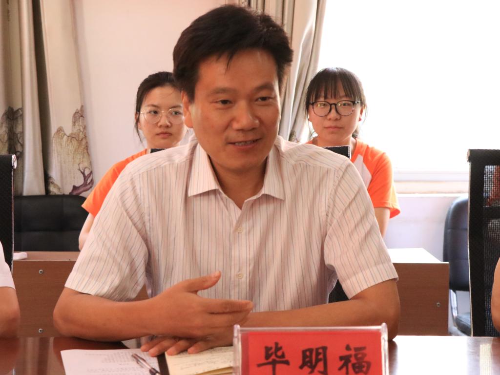 颜明辉、陈怀友分别表达了对毕校长一行的热烈欢迎,对我校连续三年在新乌江镇开展社会实践活动给与了高度的肯定和赞扬,并希望学校和支教同学们能继续对新乌江镇乡村教育的发展给与更多的支持和帮扶。刘长生给与了实践团队充分的鼓励,希望同学们把握机会,在实践中拓展青春的广度,增加知识的厚度、提升人生的高度。