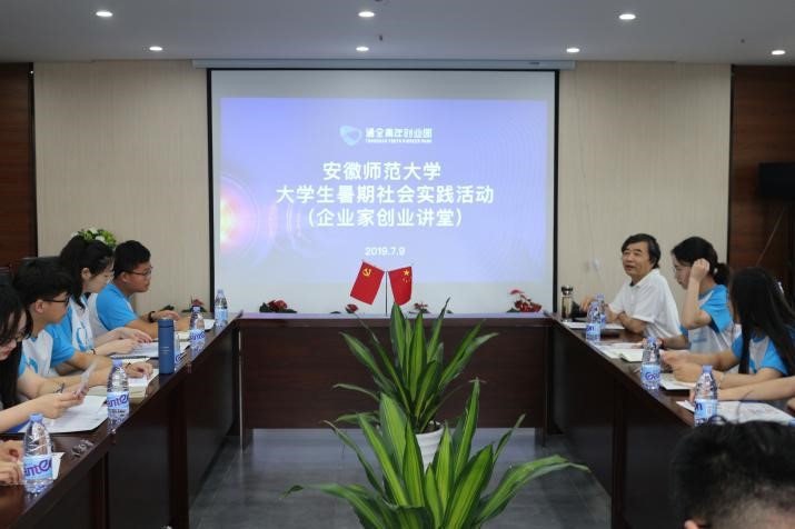 2019年的7月4日及5日,盛夏刚启,虽然实践还未开始,但是孙益民老师作为队伍的指导老师还是不辞辛劳的带领着队长赵佩微,副队长袁周。前往安徽神剑新材料股份有限公司、芜湖通全科技有限公司,与两位公司的负责人预先进行了接触和沟通。
