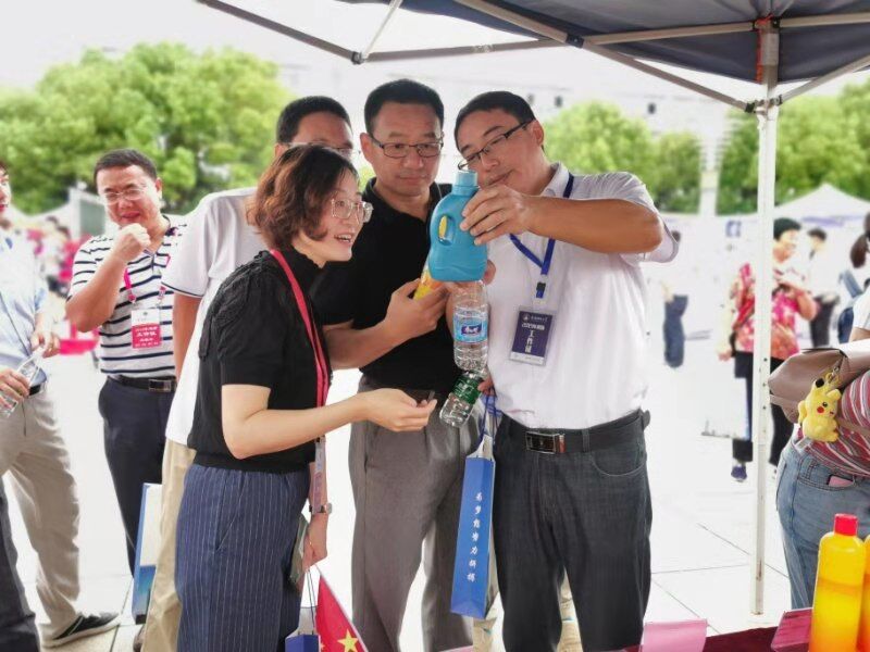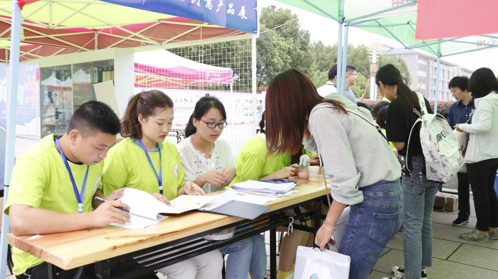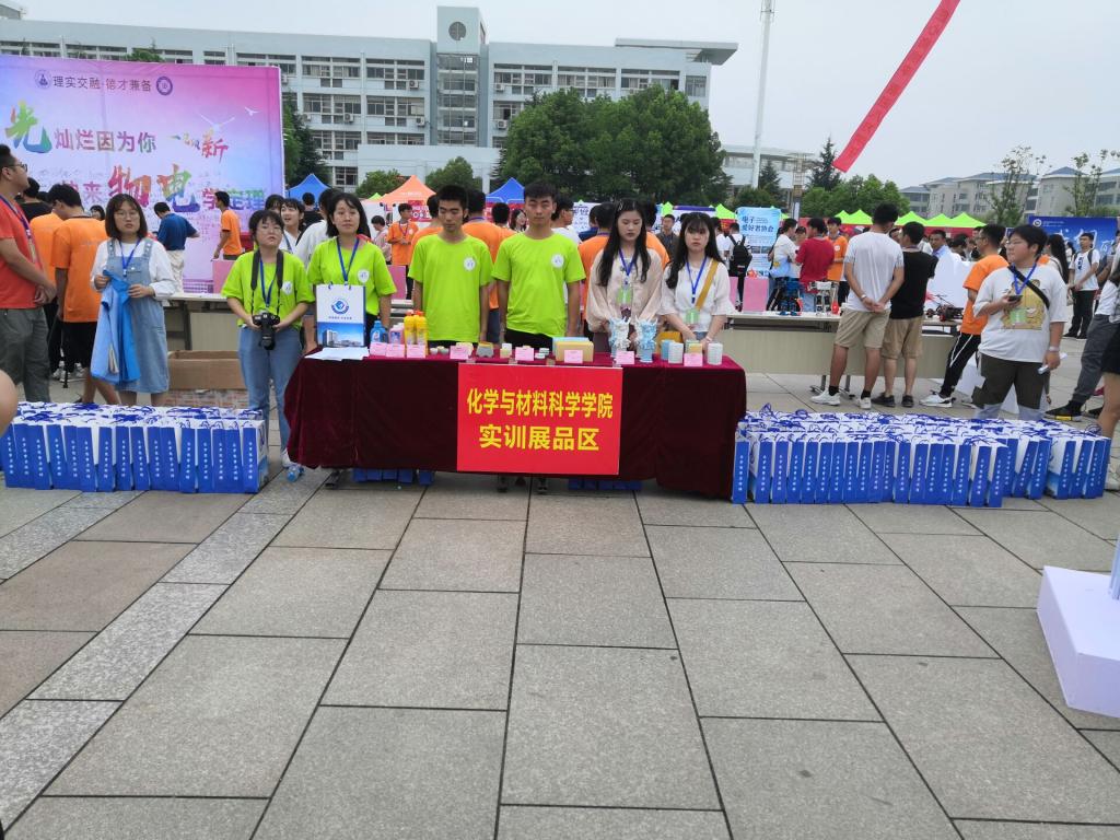 精心打造三大迎新品牌,努力为2019级新生上好大学“第一课”。一是实训作品展,环保笔筒、流香洗衣液、强力洗洁精等一系列自制产品出现在展示桌上,桌侧整齐摆放数百份礼品袋,内装环保笔筒和流香洗衣液各一份。这是2016级同学在老师的指导下,为2019级新生送上的入学第一份礼物,体现出学院老师、同学对新生的殷切关怀。二是“梦想绽放在创新化材”心愿墙,写下心中小小愿望,遥寄未来的自己。三是(展板内容)“AgZn”“青春”“梦想”等字模激励着新生不忘初心、奋发图强,学生、家长纷纷合影留念。