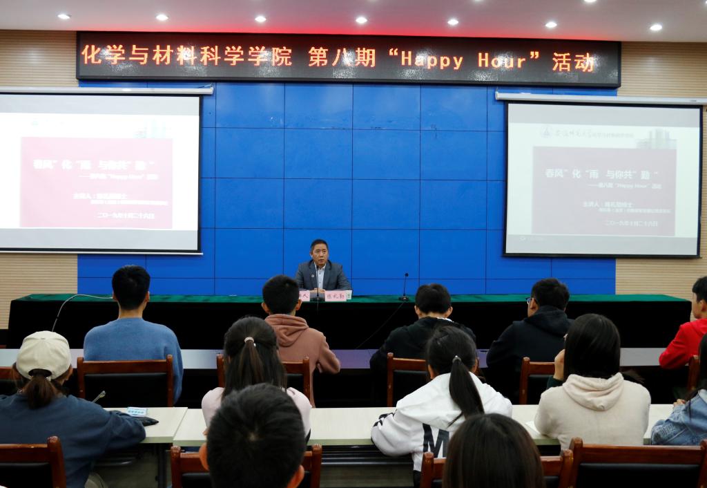 于26日下午在我校会议中心第三报告厅举行了第八期“Happy Hour”活动——“春风化‘雨’,与你共‘勤’”。本次活动邀请了我院知名校友,梯尔希(南京)药物研发有限公司的董事长陈礼勤博士来主讲,活动由党委副书记余妍霞主持,300多名学生代表齐聚一堂,陈博士以座谈会的形式与我院学生畅谈青春理想。