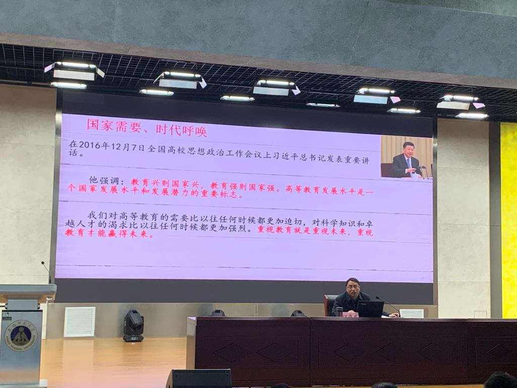 为解决新生入学不适应性问题,特邀党委书记汪俊武为2019级新生讲授了一堂主题为“不忘初心勤学习,牢记使命勇担当”的互动交流思政课。汪俊武书记围绕主题和学生实际,从“为什么要上大学”,“上大学可以做什么”,“我要怎样上大学”三个方面来为同学们答疑解惑。他指出上大学不仅仅是个人的需求,家庭的期盼,更是国家的需要、时代的呼唤。还以自己的大学生活与现如今同学们的大学生活进行比较,对于大学可以做什么给出了自己的建议,同时还分享了怎样上好大学的体会——做好“123”,即一个发挥,发挥主体作用;二个做到,做到管理时间、管好自己;三个提升,提升知识、素质、能力。通过本次学习,19级新生们表示要努力做一个清醒、清楚的大学主人,而不是做一个糊涂、茫然的大学过客,也对如何成为一名优秀的大学生有了一定的标准,明白自己要学会脚踏实地,学会理性思考,学会合理规划规划大学生活。