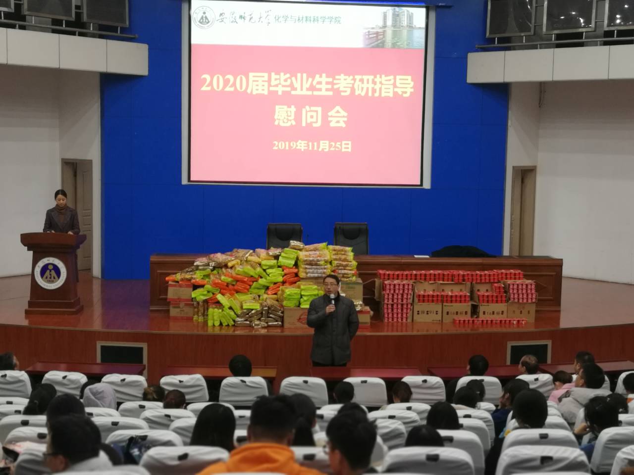 )寒冬送温暖,情系研考生。为鼓舞士气,增强信心,11月25日下午,学院在敬文图书馆召开2020届毕业生考研慰问会。学院党政领导班子、各系主任出席,毕业班辅导员及全体考研学生参加了此次慰问会。慰问会由党委副书记余妍霞老师主持。