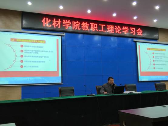汪俊武带领大家学习了校党委工作报告,指出过去五年,是全校上下攻坚克难、负重前行的五年,也是奋勇争先、稳中有进的五年。今后五年是机遇与挑战并存,改革攻坚与争先进位并举的五年。全校上下必须解放思想、凝聚共识,增强自信、保持定力,改革为先、干字当头,大力推动各项事业高质量发展。必须坚持“特色、开放、创新”的办学理念,以立德树人为根本,以“双一流”建设为牵引,以服务经济社会发展为己任,全面实施铸魂育人和强基兴师两项主体工程,统筹推进学科、学位点、专业三大基础建设一体化发展,深入开展教学提质、科研攀登、服务融合、文化引领、开放聚力五大关键行动,着力完善内部治理和服务支撑两大保障体系,奋力开创国内一流、特色鲜明的高水平大学建设新局面。