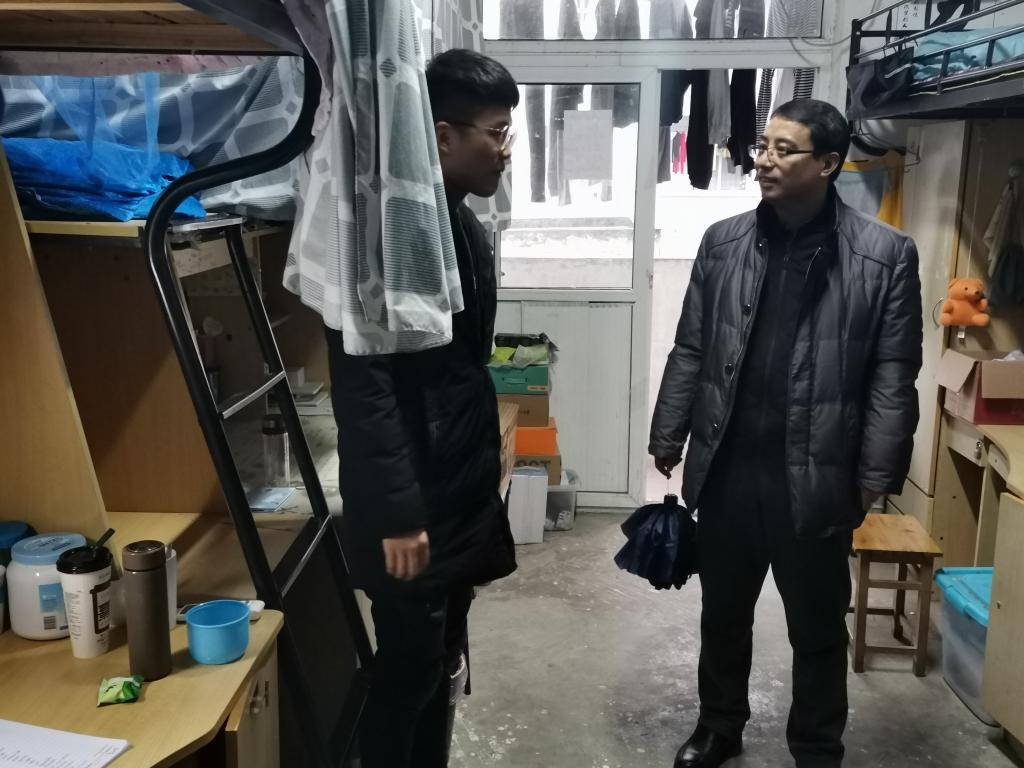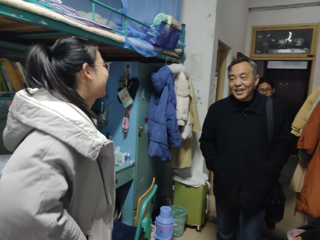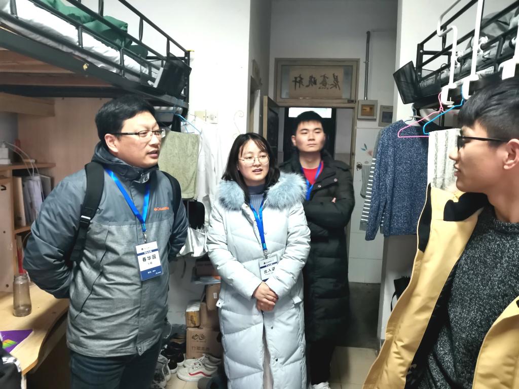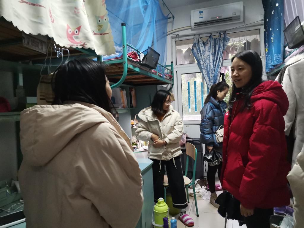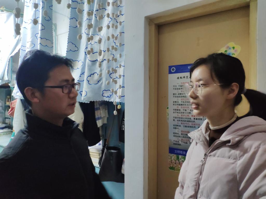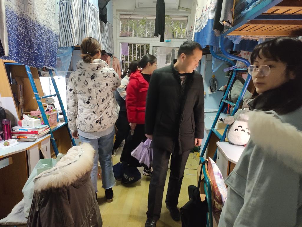 党政领导、各系主任及全体辅导员深入学生寝室,对冬季寝室安全问题进行走访排查,帮助同学们牢固树立安全意识,并分组对本年度新申请的“自律寝室”进行了挂牌。查寝过程中领导、老师发现,大部分学生寝室物品摆放有序,地面整洁干净,部分学生寝室浓郁的学习氛围更让这次查寝院领导和辅导员感到欣慰。学期末的此次检查,一是为了解高年级学生考研结束后的学生生活学习状态,二是了提醒督促同学们注意冬季用电安全。走访过程中,领导、老师们与同学们进行了亲切交流,关心同学们的生活状况,叮嘱同学们注意用电安全、财产安全。