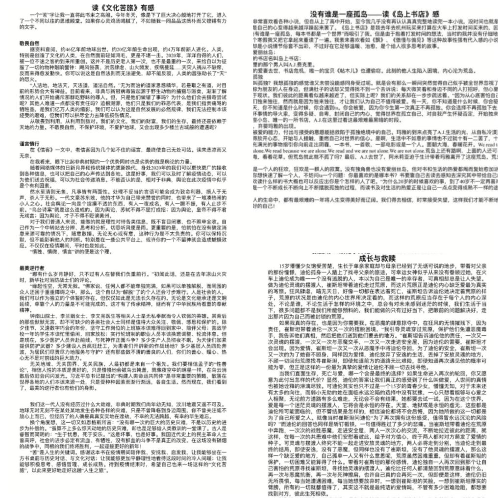 胸藏文墨怀若谷,腹有诗书气自华。在全国上下全力抗击疫情的特殊时期,化材学子不为国家添乱,自觉宅在家,坚持与书香为伴。一花一世界,一书一天地,在获奖作品中,有对余华《活着》的心得体会,也有对龙应台《目送》的人生感悟,在文化经典中体验人间百味,丰富课余生活。18材化(1)班的黄宁宁在《文化苦旅》读后感中这样写道:“‘苦’是人生的关键词。感谢这本书在疫情期间陪伴我、安抚我、启发我……让我能够更加平静理性地看待这段时间的冷人间暖”。书香墨宝,颂中华经典;笔画字句,扬文化内涵。从书中获取力量,在梦想之路上勇敢前行。