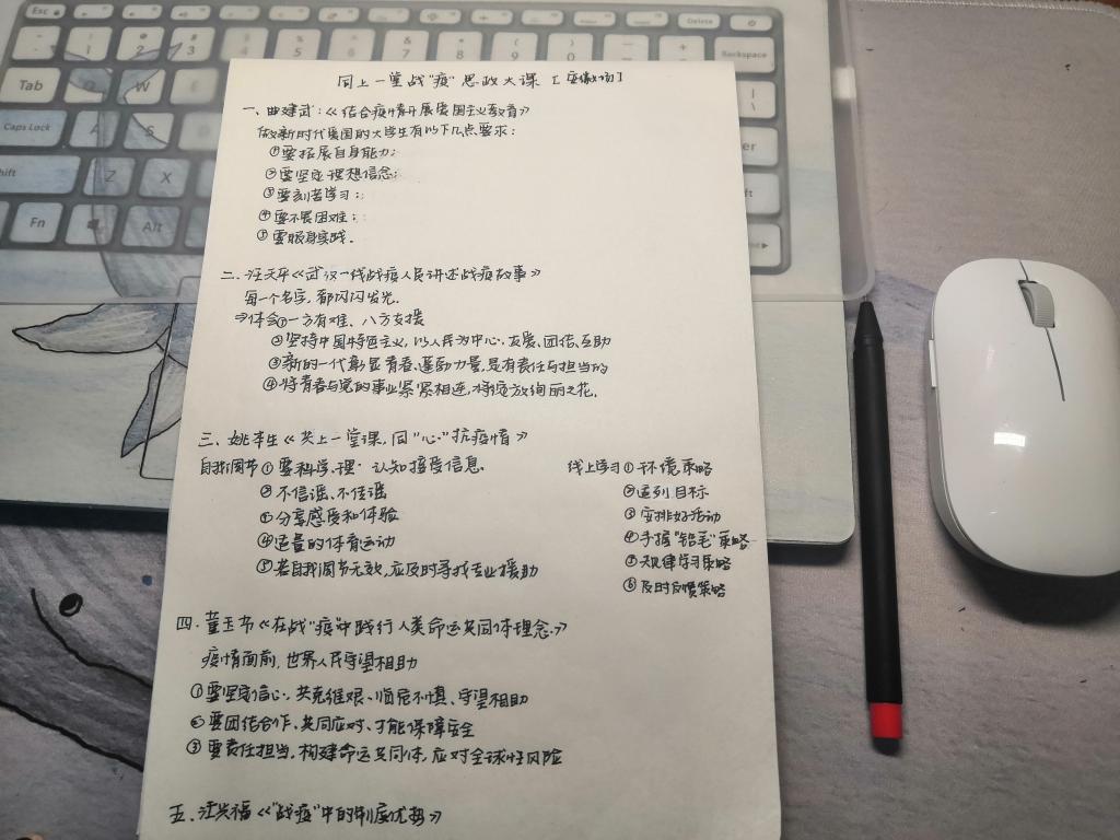 在线直播学习结束后,学院组织师生鼓励师生撰写学习心得,进一步强化对思政课讲授内容的理解,将教育效果延伸到课下和生活中,真正把思想教育做到学生心里。