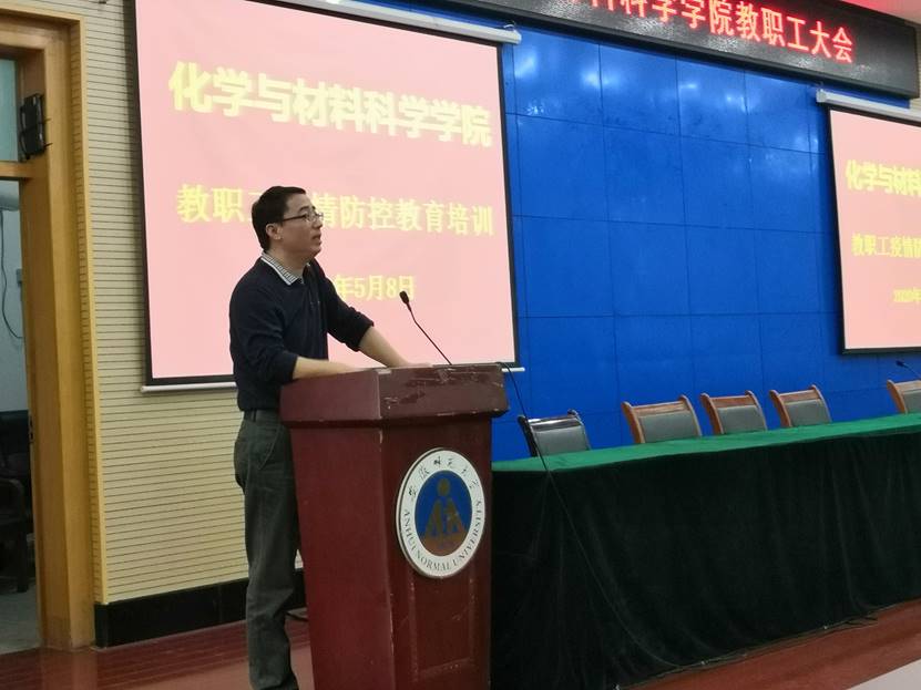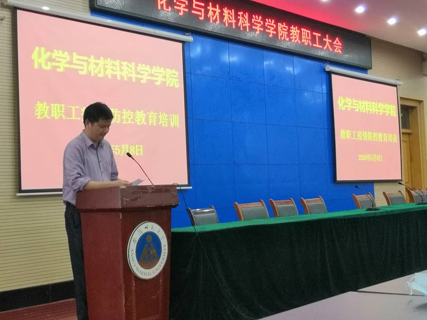 于5月8日下午组织开展教职工疫情防控教育培训,全体教职工参加了会议。会议由学院党委书记汪俊武主持。