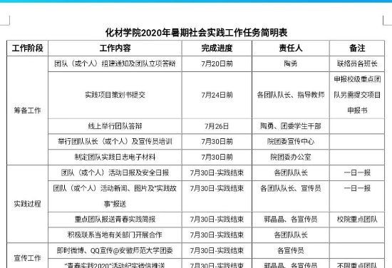 高度重视此次2020年大学生暑期“三下乡”社会实践活动,学院领导小组专门研究制定社会实践活动指导方案,精心筹备前期工作,引领化材学子践行青春使命。同时,让学生们多方面、多角度对暑期社会实践活动有了一个全面的了解,开启了2020年暑期社会实践活动的第一幕。