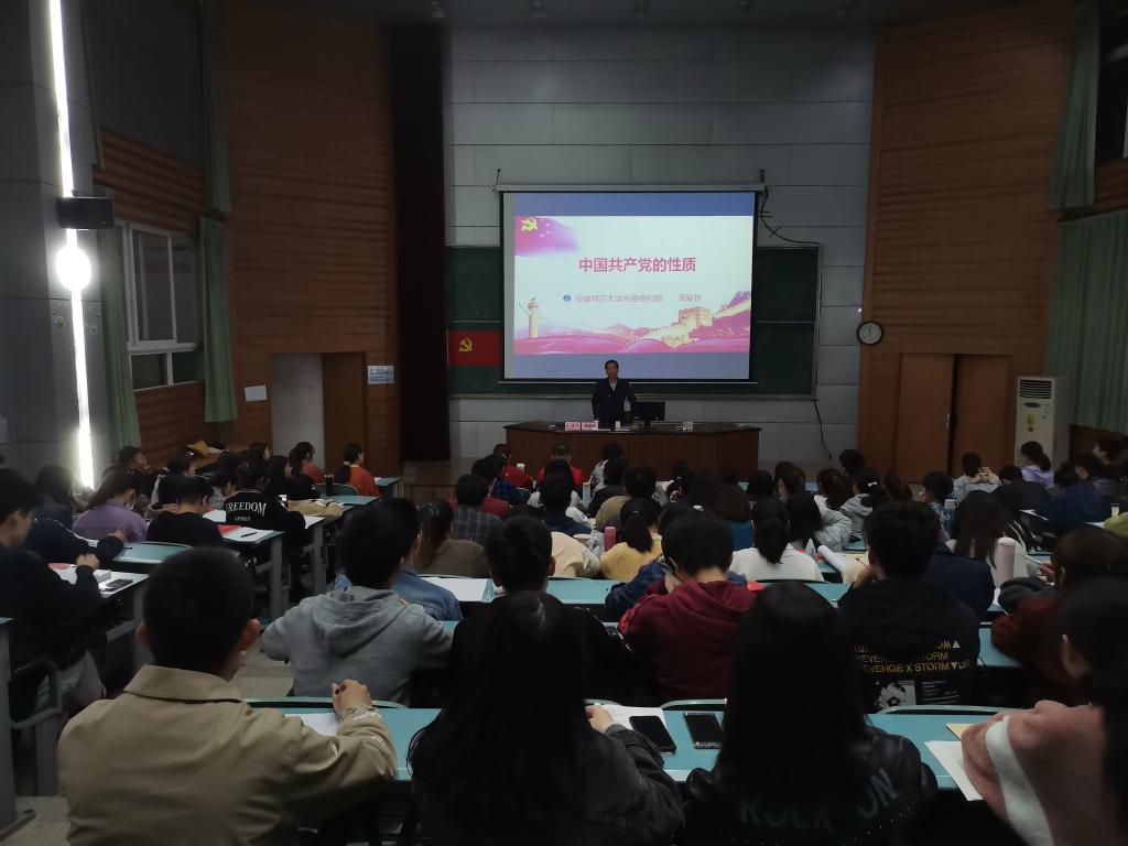 分党校)2020年10月30日晚上7点,校党委常委、组织部部长季爱新应邀为本院入党积极分子培训班学员讲授“中国共产党的性质”专题。