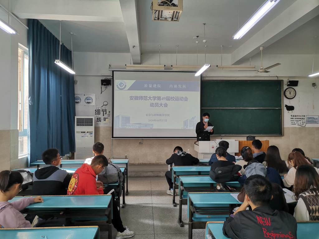 第49届校运会动员大会在行知楼2010302教室准时召开,本次会议由学院团委书记陶勇老师及学生会指导老师陈静共同主持。会上,陶勇老师就此次校运会运动员赛前训练及积分奖励补贴的发放条例进行了详细说明,鼓励运动员积极训练,认真备战。随后,陈静老师就运动会的相关注意事项做了具体说明,提醒各位运动员们要注意赛前赛中个人安全防护,友谊第一比赛第二。同为即将代表篮球比分手机