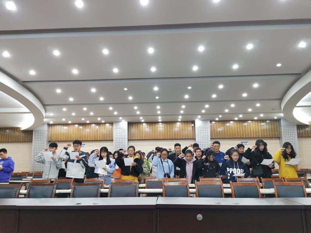 团委学生副书记鲁立一带领全体成员进行任职宣誓,强化使命感、责任感。