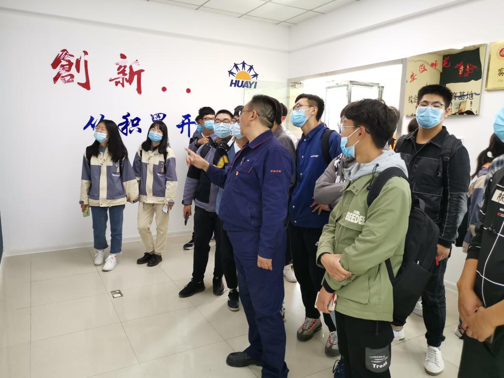 下午一点二十分,同学们坐车前往安徽华谊有限公司。抵达目的地后,公司党委书记颜旭勇、总经理陈楠和相关部门负责人热情接待了我们,华谊工作人员还与同学们进行合照。