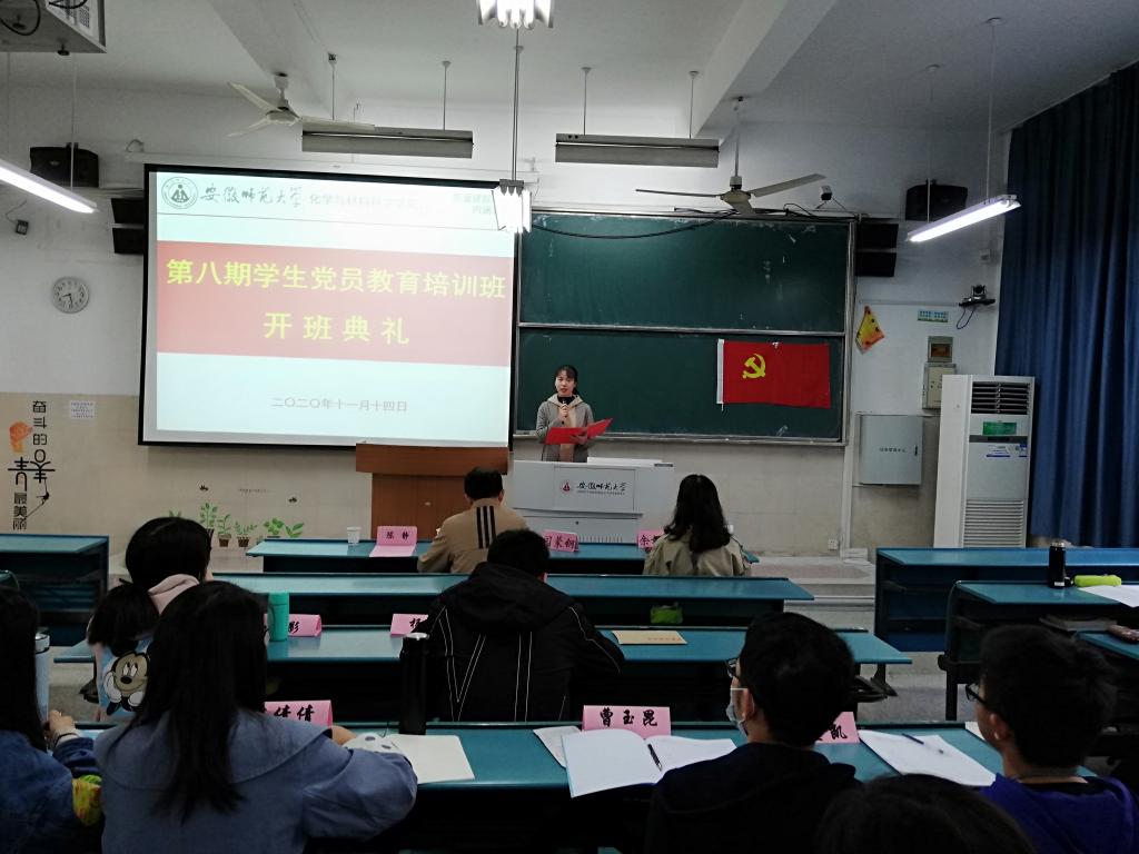 分党校第8期(校第9期)学生党员教育培训班正式开班。分党校指导教师闫蒙钢,院党委副书记、分党校副校长余妍霞及全体党校班同学参加了开班仪式,仪式由培训班班主任陈静主持。