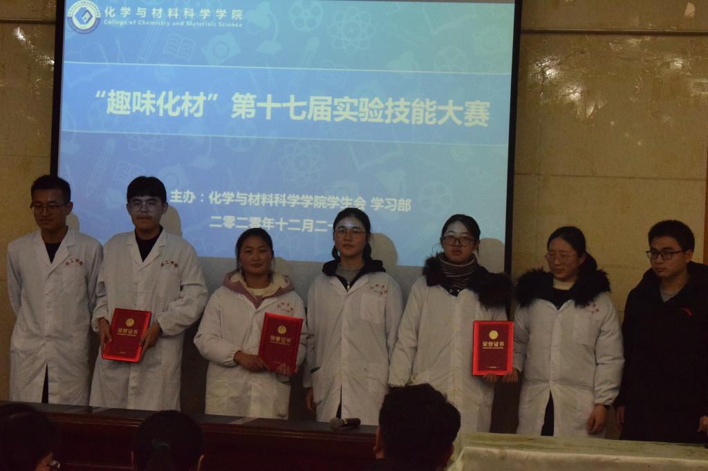 “趣味化材”化学实验技能比赛是我院素质拓展活动的一项精品课程。成功地将化学理论与专业实践有机结合,不仅激发了同学们对化学的兴趣,增强了同学们对知识的运用能力,培养了学生的创新思维,更是以化学作为桥梁,增加了各学院之间的交流,将化学之美表现的淋漓尽致。