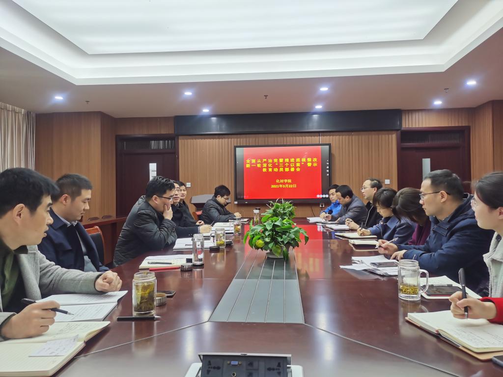 在礼勤楼702会议室召开全面从严治党暨推进巡视整改、新一轮深化“三个以案”警示教育动员部署会,学院党政班子成员、科级干部及专职辅导员参加会议。会议由学院党委书记汪俊武主持。