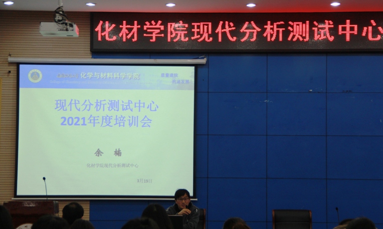 行政副院长王波涛、科研副院长周双六、测试中心全体教师、2020级全体研究生(课程教学论与学科化学除外)以及近三年引进的教师参加了培训会。