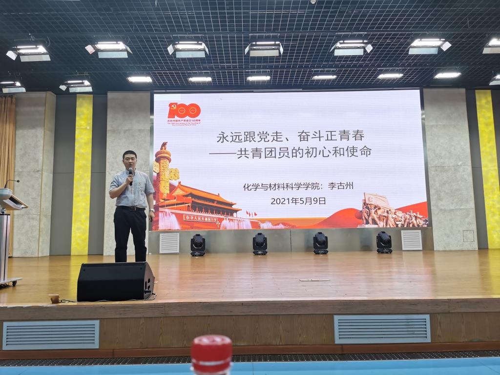 5月9日上午,学院团委组织2020级本科生开展“青春心向党,奋进新时代”主题团日活动。第17届“师大骄子”十佳大学生提名奖获得者王磊、宋稚豪同学分享了大学四年的学习体会;学院校友、第七届“中国青少年科技创新奖”获得者蒯龙为全体同学作题为《浅谈大学学习》的青春报告;院党委副书记李古州结合学习习近平总书记考察清华大学时的重要讲话精神和安徽省委副书记程丽华在全省“学党史 强信念 跟党走”主题团日活动上的讲话精神,作了题为《永远跟党走 奋斗正青春—共青团员的初心和使命》的主题团课。活动结束后,2020级本科生纷纷表示要志存高远、爱党爱国、心怀理想、逐梦前行,始终把学习作为自己安身立命之本,勇于投身实践,练就过硬本领,为实现中华民族伟大复兴的中国梦贡献力量。