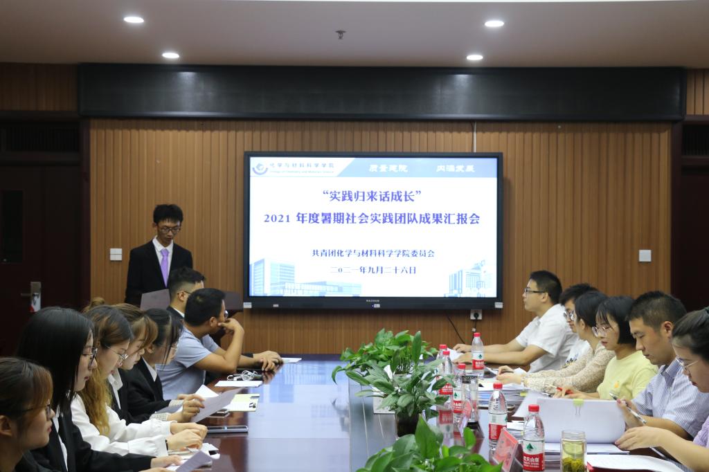于9月26日晚在702、707会议室举行“实践归来话成长”暑期社会实践成果汇报会,学院党委副书记李古州、团委书记陶勇、团委副书记陈静、段传钦以及相关辅导员参加本次会议。33位暑期社会实践团队队长积极总结展示实践成果。