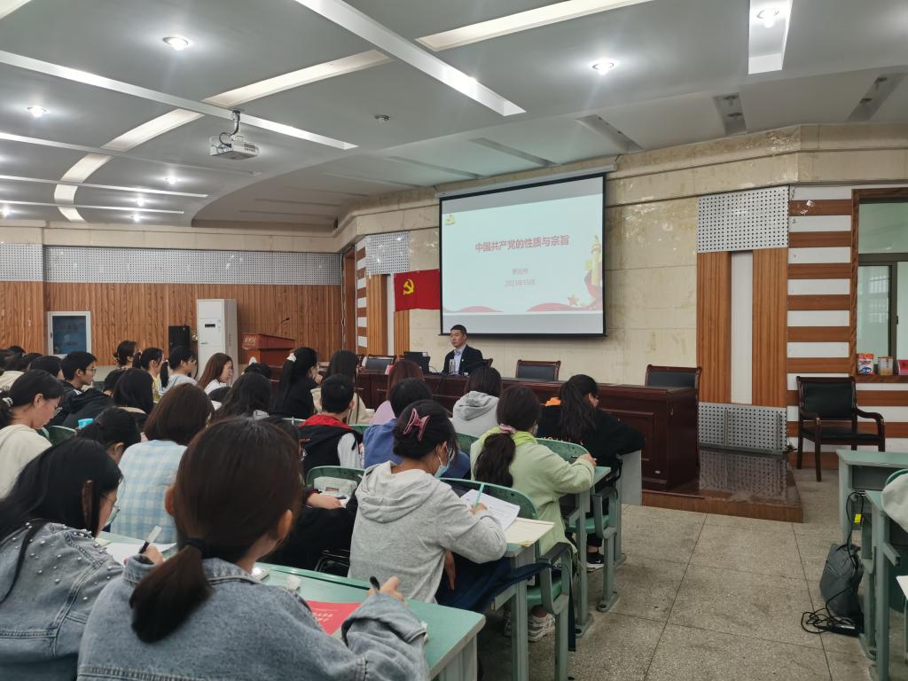 校党委组织部副部长余妍霞作《学党史、悟思想、正动机》的专题报告。她通过影片和文字资料讲述了6个共产党人用生命守卫信仰,用热血践行使命的动人故事,学员们真切感受到共产党人践行党章的初心和使命。余部长详细介绍了党章的历史沿革和主要内容,让同学们深刻领会到党章的基本内容以及深刻内涵,通过看《榜样》有所触动,学《中国共产党章程》有所启发,从而不断端正入党动机。