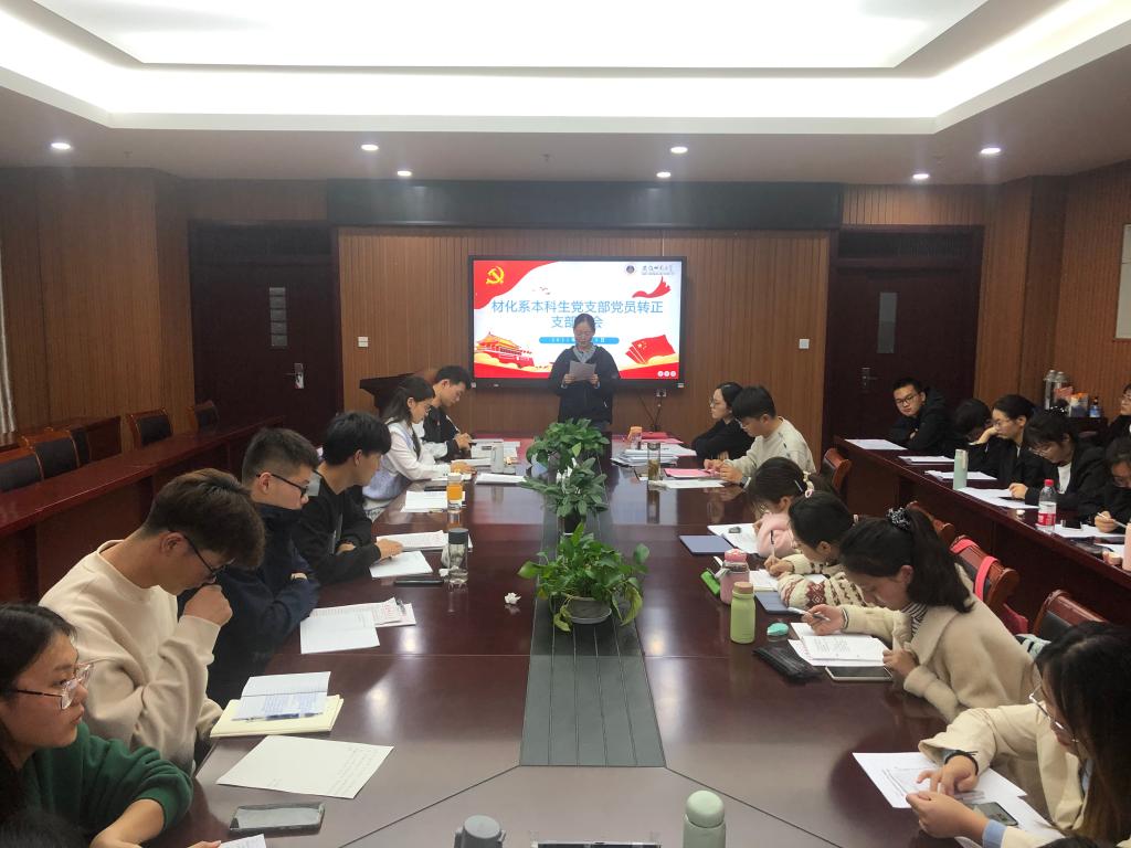 材化系本科生党支部在礼勤楼702会议室举行了2021下半年党员接收及预备党员转正党支部大会。本次大会由党支部书记王芳同志主持,材化系本科生党支部全体党员及发展对象共同参加此次会议,篮球比分手机